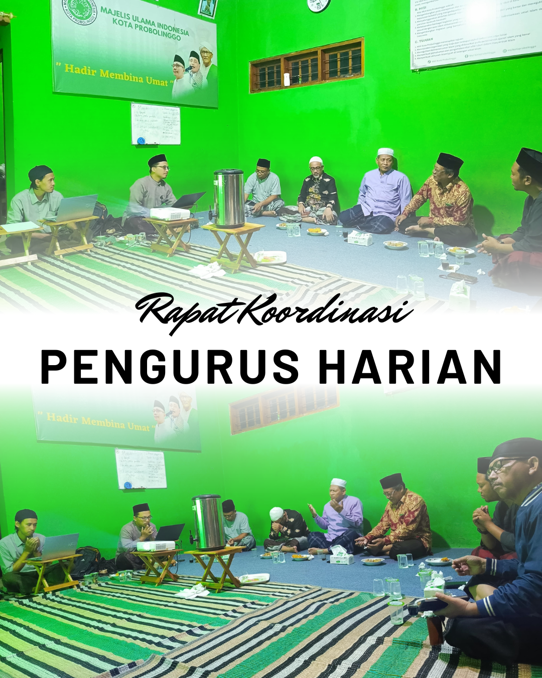Probolinggo, 20 Juni 2025 — Majelis Ulama Indonesia (MUI) Kota Probolinggo menggelar rapat koordinasi pengurus harian pada hari ini di Kantor Sekretariat MUI Kota Probolinggo. Rapat tersebut dipimpin langsung oleh Sekretaris Umum MUI Kota Probolinggo dan dihadiri oleh beberapa jajaran pengurus harian lainnya.